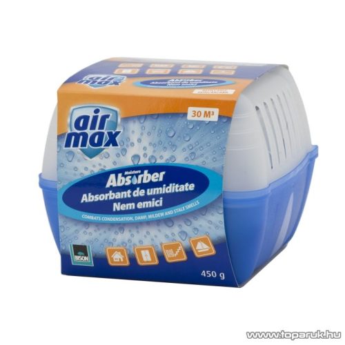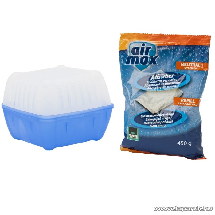 BISON Airmax páramentesítő kivonja a felesleges párát a levegőből az egészséges páratartalom (50-60%) eléréséig. A páramentesítő higiénikus környezetet teremt és véd a felesleges párától. Hosszan tartó hatás 35m3 (450g-os), 60m3-ig (1kg-os). Szagmentes. A szikaktív granulátumok megkötik a levegő páratartalmát megakadályozzák a páralecsapódást, a penészt, penészfoltosodást, korróziót és a dohos szagot.