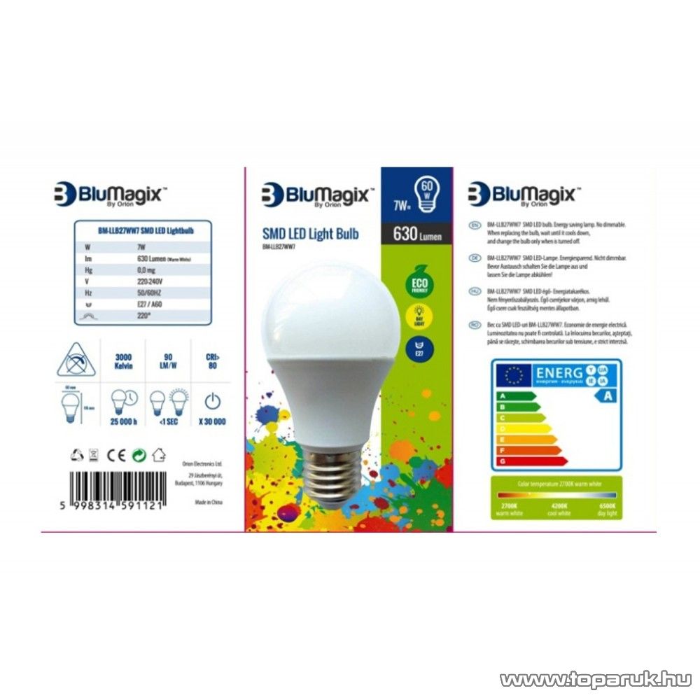 BluMagix BM-LLB27WW7 Energia takarékos SMD LED égő, 7W, E27 foglalat, meleg fehér