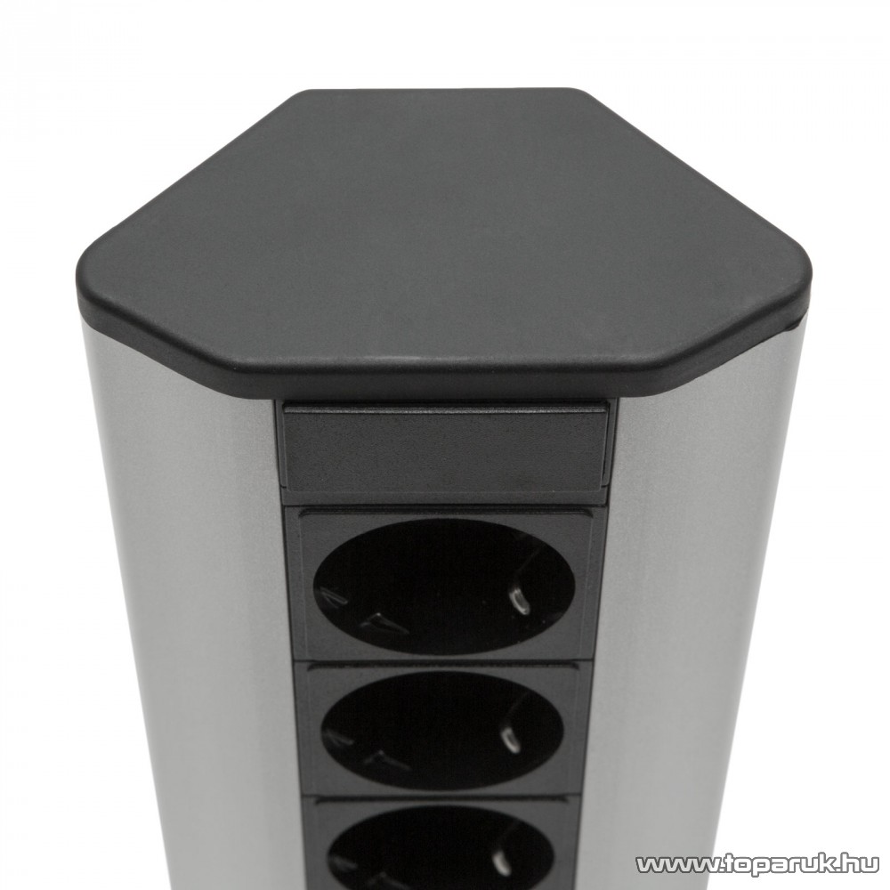 Delight 20483 Aluminum házas sarok elosztó, 3 x 250V, 16A + 2 x beépített USB porttal
