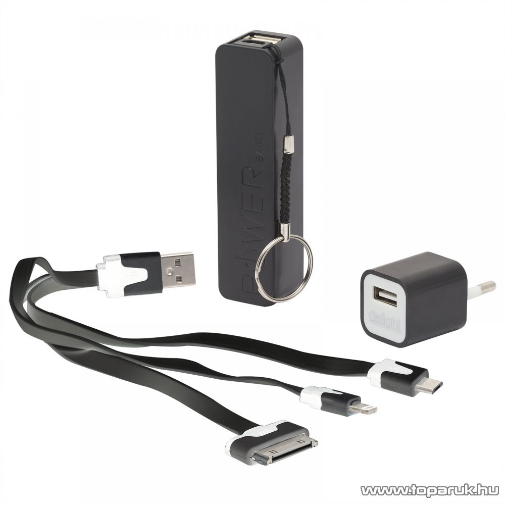 Delight Power bank hordozható, újratölthető, univerzális energiaforrás, univerzális külső akkumulátor, 1800 mAh, fekete (55380BK) - megszűnt termék: 2017. november