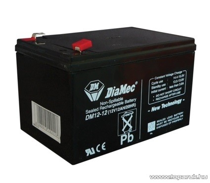 DiaMec 12V, 12Ah Zselés, ólom akkumulátor, gondozásmentes szünetmentes akku