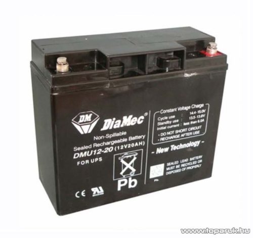 DiaMec 12V, 20Ah Zselés, ólom akkumulátor, gondozásmentes szünetmentes akku