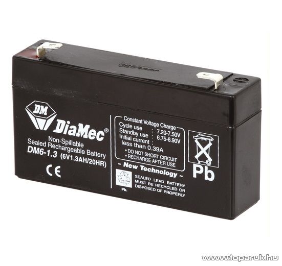 DiaMec 6V, 1,3Ah Zselés, ólom akkumulátor, gondozásmentes szünetmentes akku