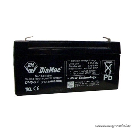 DiaMec 6V, 3,3Ah Zselés, ólom akkumulátor, gondozásmentes szünetmentes akku