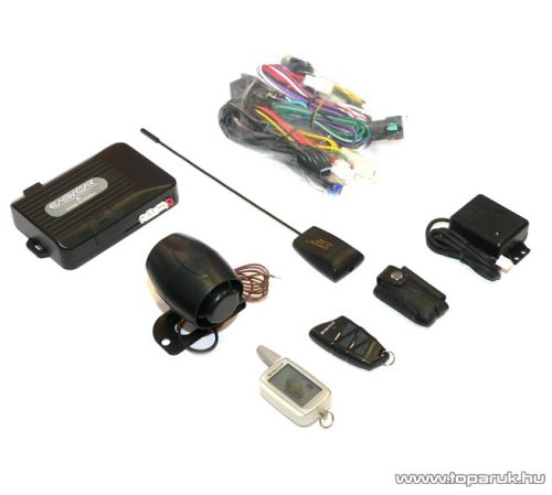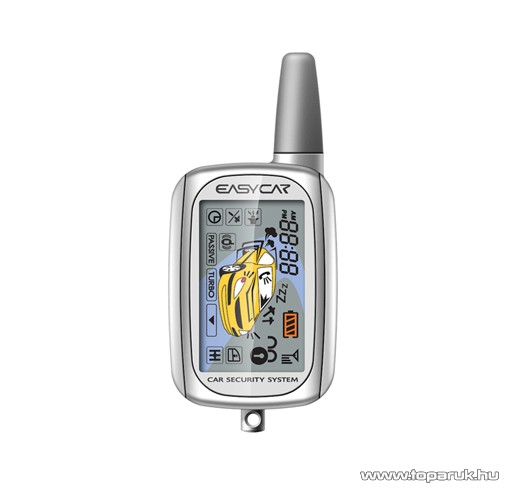 EASYCAR EV402-A Autóriasztó, 1 db vízálló LCD + 1 db kiegészítő távirányítóval, bőrtokkal és szirénával