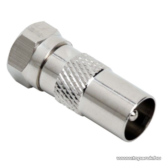 F / TV koax átalakító csatlakozó, F dugó - TV koax dugó, fém kivitel, 5 db / csomag (05332)