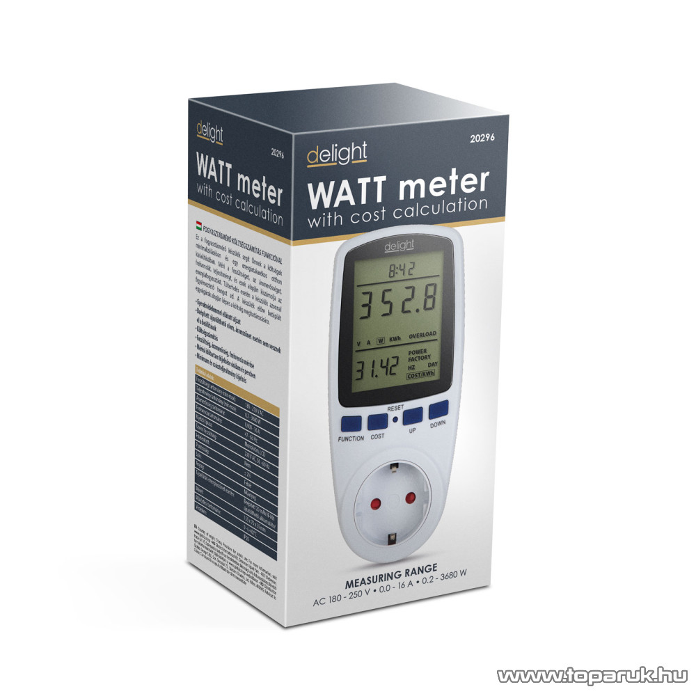 Ez a fogyasztásmérő készülék segít Önnek a költségek minimalizálásában és egy energiatakarékos otthon kialakításában. Méri a feszültséget, az áramerősséget, frekvenciát, teljesítményt, és ezek alapján kiszámolja az energiafogyasztást. Túlterhelés esetén a készülék azonnal figyelmeztető hangot ad.