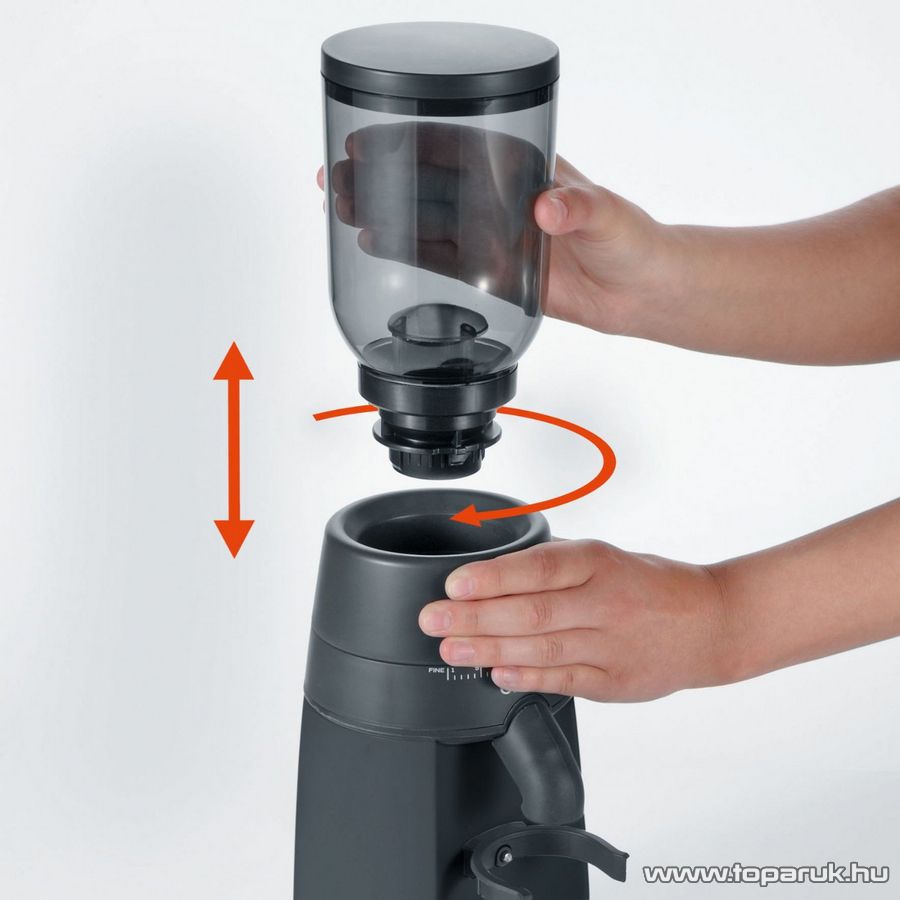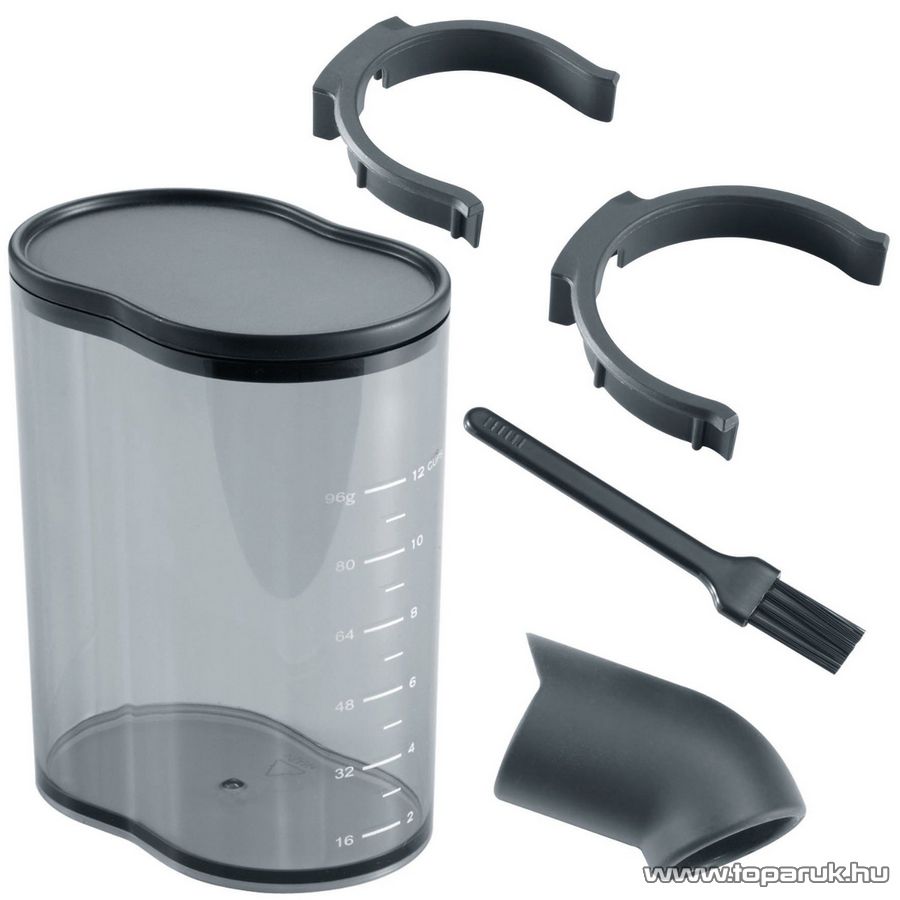Szemes kávé átlátszó tárolójának űrtartalma: kb. 250 gr kávébab. A kávébabtartály rendkívül könnyen eltávolítható, aminek köszönhetően hozzáférhet az egyszerűen kivehető örlőkéshez is. A kávébabtartályt csúsztatós zárral könnyedén rögzítheti a visszahelyezést követően.