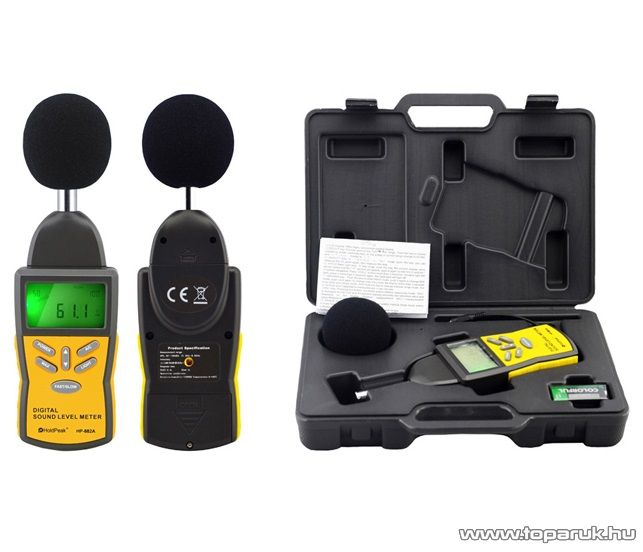 HOLDPEAK 882A Digitális zajszintmérő mérőműszer kofferben, 30-130dBA, 35-130dBC, számjegyes és bargraph megjelenítés funkcióval