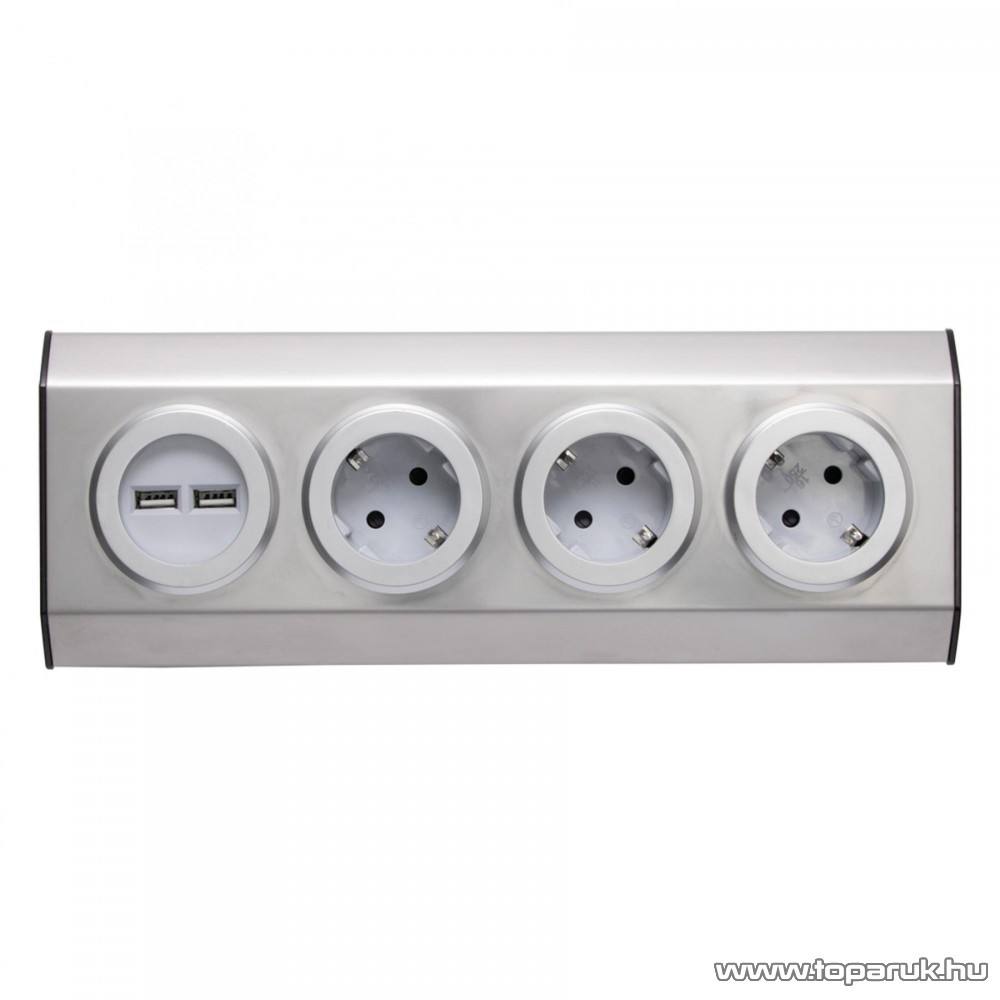 HOME KNV 03/USB INOX szerelhető konyhai elosztó USB aljzatokkal, rozsdamentes acél