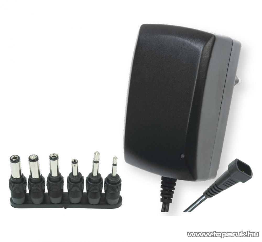 A készülék tartozéka egy 6 db-os csatlakozókészlet (polaritás-állítási lehetőséggel). A hálózati adapter 3-12 V-os készülékekhez ideális, 2250 mA áramfelvételig.
