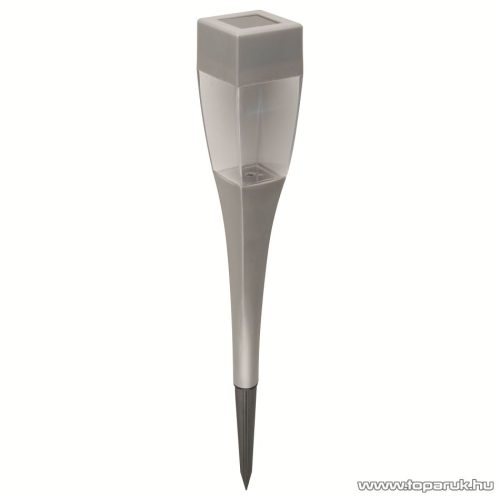 Öltöztesse fel kertjét az éjszakára varázslatos fényekkel! Ehhez mi sem nyújthat egyszerűbb megoldást, mint a napelemes kerti lámpa. A termék esztétikus külsővel rendelkezik, továbbá minőségi műanyag alapú kivitelezésben kapható. A napelem a természetes fényben tölti az akkut. Be- és kikapcsolódása automatikus, így Önnek csak arra lesz gondja, hogy a földbe leszúrja a lámpát. Cserélhető (1,2 V/200 mAh) AAA NiMH akkumulátorral rendelkezik. Mérete: ∅4,9 X 68 cm.