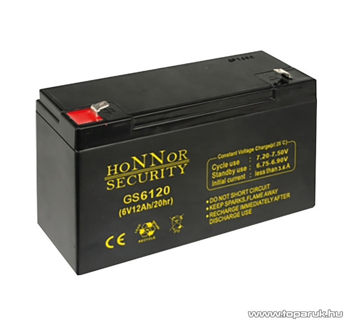 HONNOR 6V, 12Ah Zselés, ólom akkumulátor, gondozásmentes szünetmentes akku