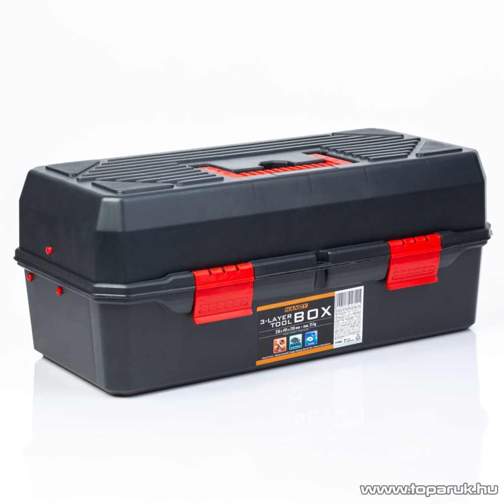 Handy Műanyag szerszámtartó láda, kinyitható tálcás szerszámosláda, 250 x 495 x 230 mm (10986)