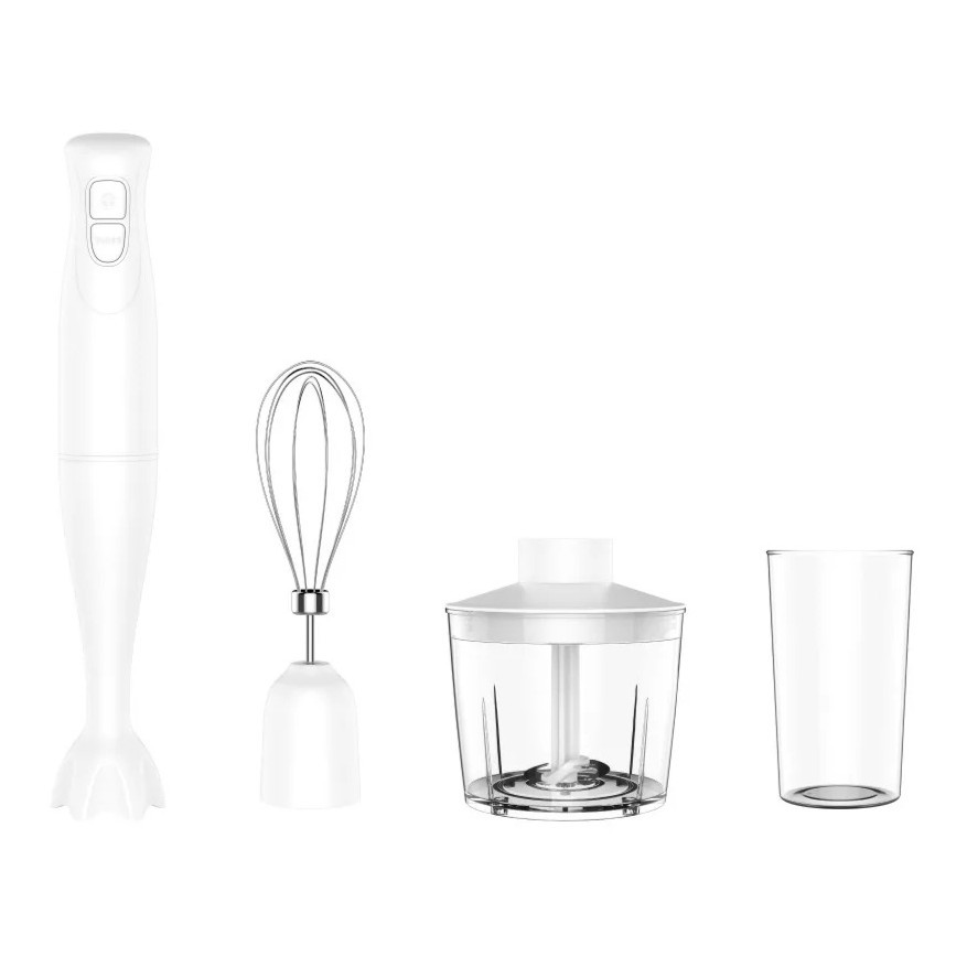A Hausmeister HM 5500 3 az 1-ben botmixer fehér színben érkezik, és tökéletes választás, ha sokoldalú konyhai segítőt keresel. Két sebességi fokozattal, cserélhető habverő, aprító és rúdmixer szárakkal könnyedén készíthetsz turmixokat, krémleveseket, szószokat, habot vagy apríthatsz zöldséget, gyümölcsöt. Rozsdamentes acél pengéje hatékonyan dolgozik, a műanyag merülőszár pedig könnyen tisztítható. A 500 ml-es aprítóedény és a 700 ml-es mérőpohár praktikus kiegészítő, így minden konyhai feladathoz ideális. 350 W teljesítménnyel gyors és megbízható működést biztosít.