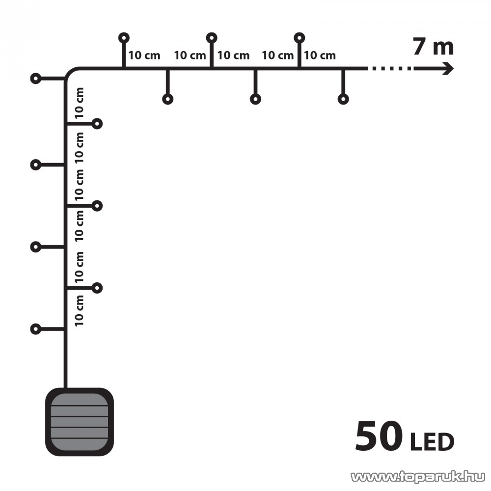 Kültéri napelemes kerti 50 LED-es égősor, fényfüzér, hideg fehér színű világítással, 7 m (55210B)