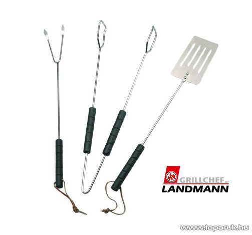 Landmann 0101 Grillkészlet, 3 darabos, krómozott, fanyéllel