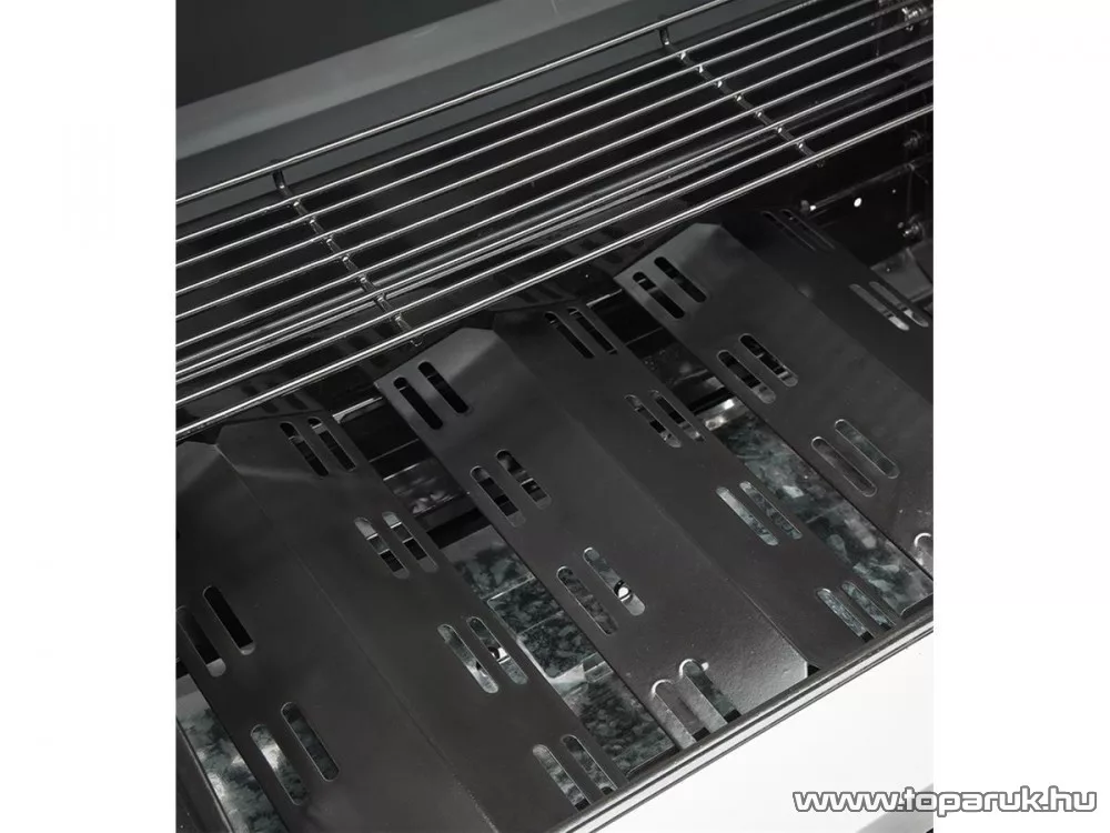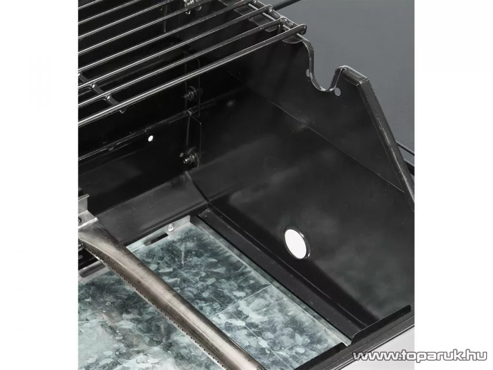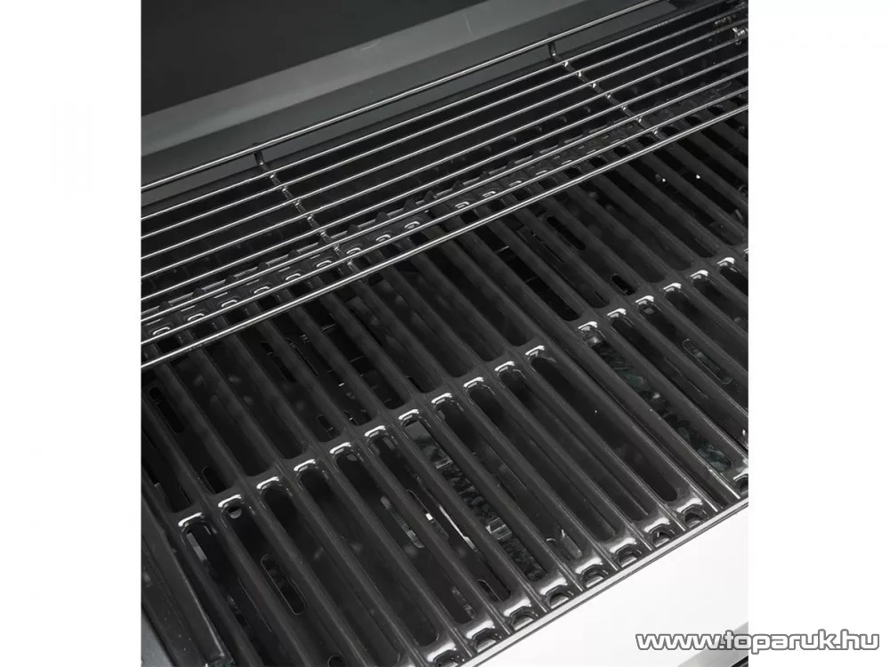 A lángszabályozók fokozatmentesen állíthatóak, modern kialakításúak. A zománcozott rácsok által nem tapad oda a készített étel és könnyedén tisztítható. A tűztér és a fedél zománcozott a magas hővédelem érdekében. A fedélen található hőmérő segít a pontos hőmérséklet beállításban. Mindkét oldalán polccal felszerelt.