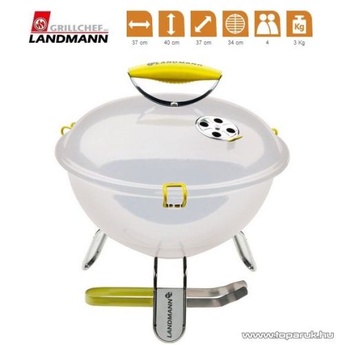 Landmann 31376 Piccolino faszenes asztali gömbgrill, zománcozott fedéllel és tűztérrel, fehér (4 személyes)