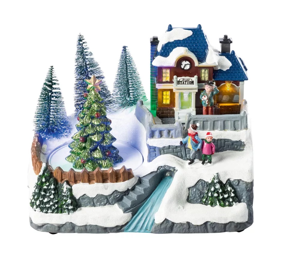 Livarno Home 482066-24-A WH Világító karácsonyi falu, zenélő jelenet körbe járó kisvonattal, 12 LED-del, 195 x 185 x 163 mm