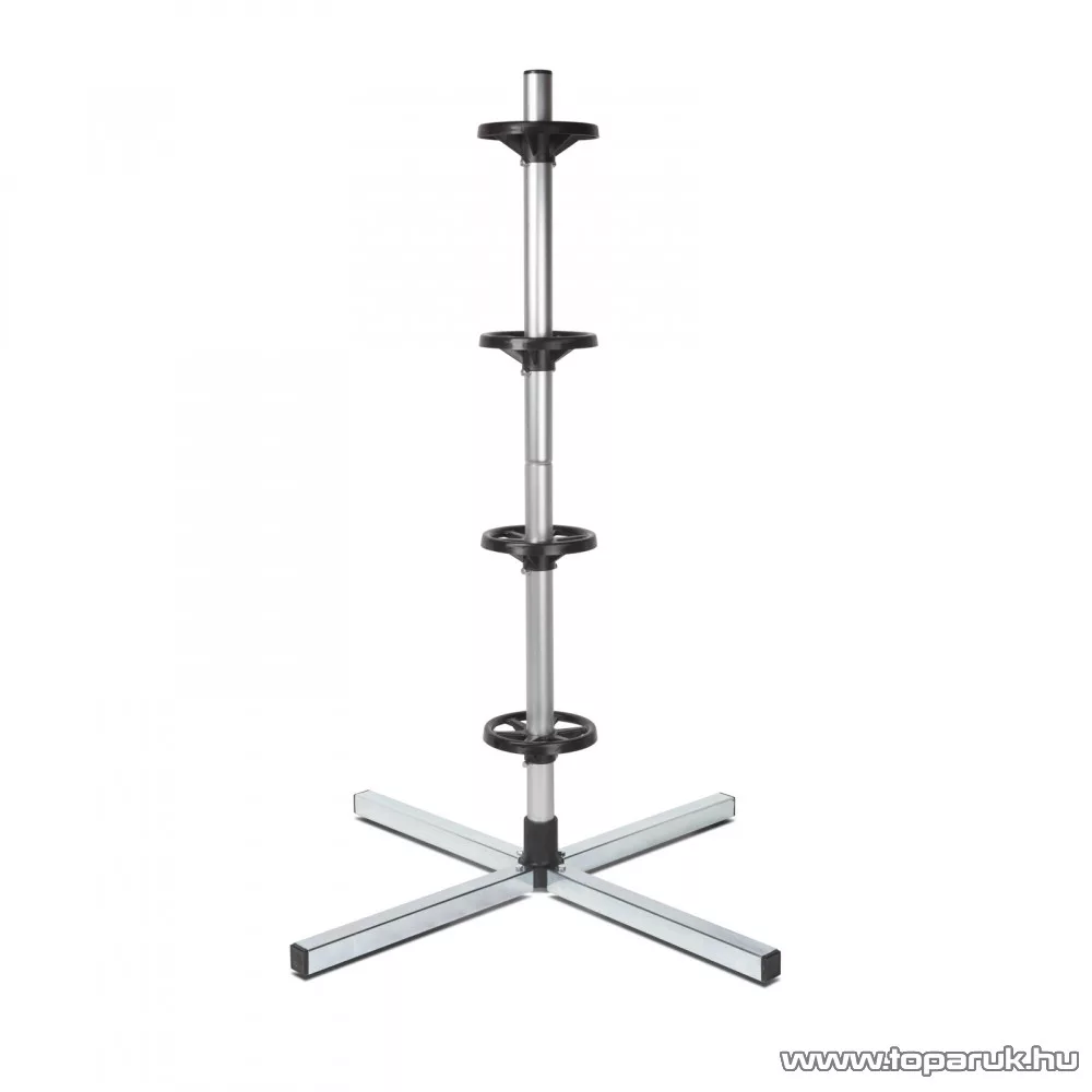 Tárolja éppen nem használt gumiabroncsait szabályosan és óvja meg őket a deformálódástól. Ennek az állványnak a segítségével a téli vagy a nyári kerekeket kis helyen tárolhatja. Az oszlopon lévő tartók biztosítószeggel rögzíthetőek, így véletlenül sem érhetnek egymáshoz a kerekek, ezáltal megakadályozható a legalsó gumi deformálódása. Az állvány könnyen és gyorsan összeszerelhető és szétszedhető ha nincsen rá szüksége.