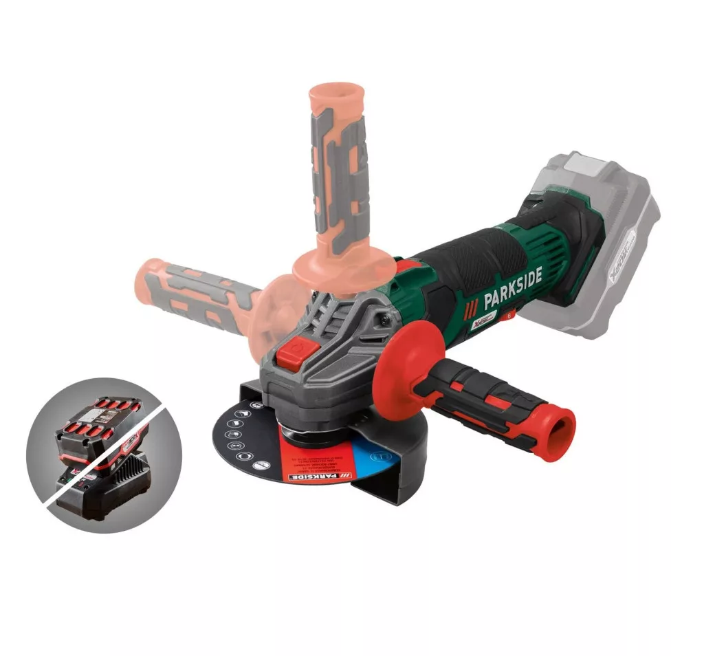 ParkSide PWSA 20-Li F4 X20V SOLO Akkumulátoros sarokcsiszoló kofferben, akku és töltő nélkül