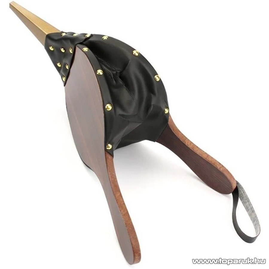 - Anyaga: műbőr, fa, fém (szegecsek + csőr)