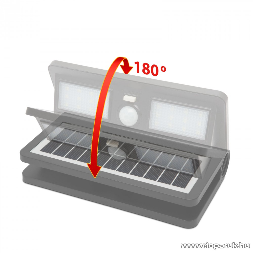 Ennek a LED mozgásérzékelős reflektornak köszönhetően, nem kell többet sötétben tapogatóznia. Ideális lehet teraszok, bejáratok, kocsibeállók megvilágítására. A napelemes kialakításnak köszönhetően, nincs szükség kábelezésre, villamos hálózat kiépítésére, könnyen felszerelhető a falra. Sötétben, kevés fény esetén mozgás hatására automatikusan bekapcsolja a 2 db egyenként 12 db LED-ből álló fényforrást, amely megfelelő megvilágítást nyújt. A világítás ~12 mp elteltével automatikusan lekapcsol. Napközben a napelemnek köszönhetően újra feltöltődik a beépített akkumulátor.