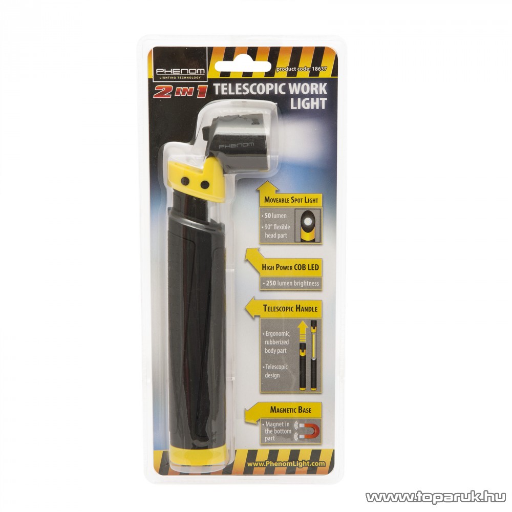 Phenom Billenthető fejű, teleszkópos, COB LED-es rúdlámpa, szerelőlámpa (18637)