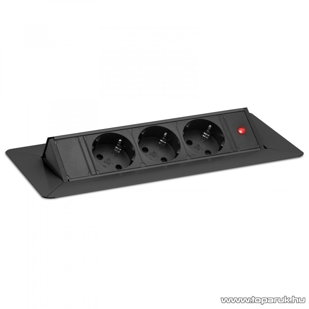 Rejtett elosztó, 3-as, 1,5 m kábelhossz, FLIP-UP kivitel, fekete (20440BK)