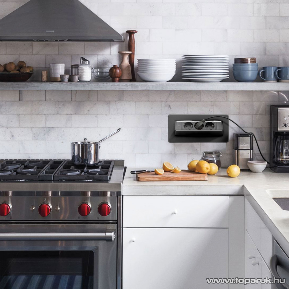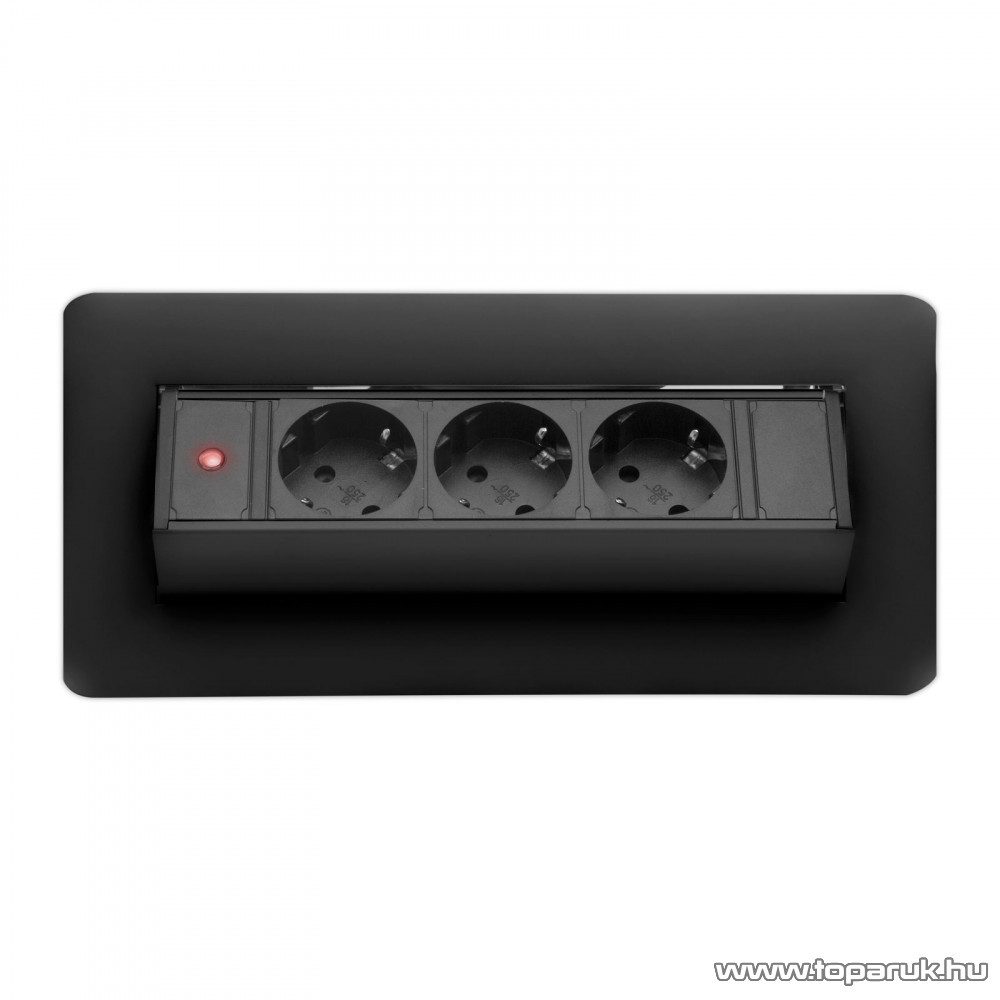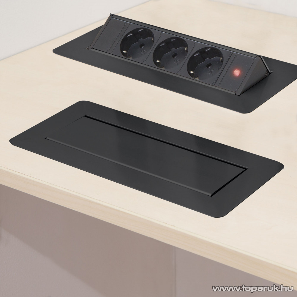 Süllyeszthető elosztó irodai és otthoni felhasználásra, szálcsiszolt felülettel, 3 db gyermekvédelemmel ellátott aljzattal. Asztala, bútora legyen mindig elegáns és rendezett, mégis funkcionális. A rejtett elosztó kiváló megoldás lehet ha már például kész konyhával rendelkezik, de nincs elegendő konnektor a kívánt helyen. Ilyenkor falvésés és villamos hálózat bővítés nélkül, remek alternatíva lehet egy rejtett elosztó. Egy mozdulat és máris rendelkezésre áll 3 szabad konnektor. Ideális lehet olyan elektromos eszközökhöz, amit nem folyamatosan használunk, kenyérpirító, vízforraló... Ha használaton kívül vannak, az "flip-up" elosztó egy mozdulattal elrejthető, ezzel is megkönnyítve például a takarítást, valamint rendezett, letisztult külsőt ad a helységnek.