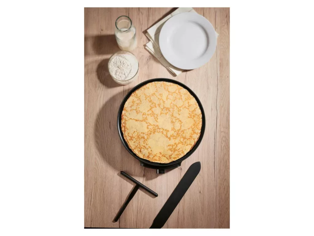 Ez a termék palacsinta és hasonló ételek sütésére készült. A termék nem használható más célokra. A palacsintasütő tökéletes választás, ha gyorsan és egyszerűen szeretnél vékony, egyenletes palacsintákat készíteni. A fixen beépített, 30 cm átmérőjű sütőlapot ILAG tapadásmentes bevonat védi, így a tészta nem ragad le, és a tisztítás is könnyű. Használat előtt előmelegítsd a készüléket, majd a mellékelt T-alakú tésztaelosztóval egyenletesen oszlasd el a tésztát a sütőlapon. A palacsintaforgatóval könnyedén megfordíthatod a palacsintákat.