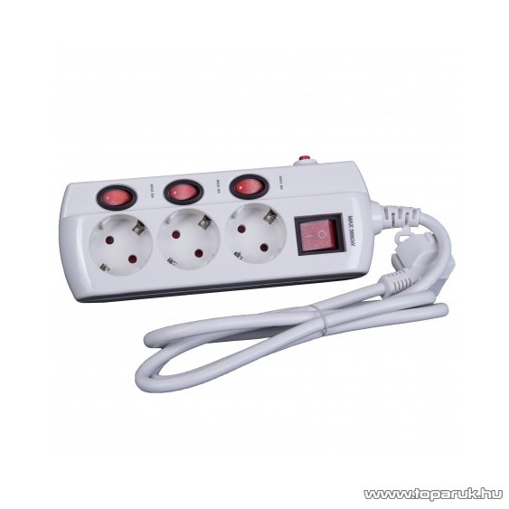 Steck SEK 315K Túlfeszültség védett külön kapcsolható hálózati elosztó, 3 aljzat, 1,5 m, fehér (11000001)