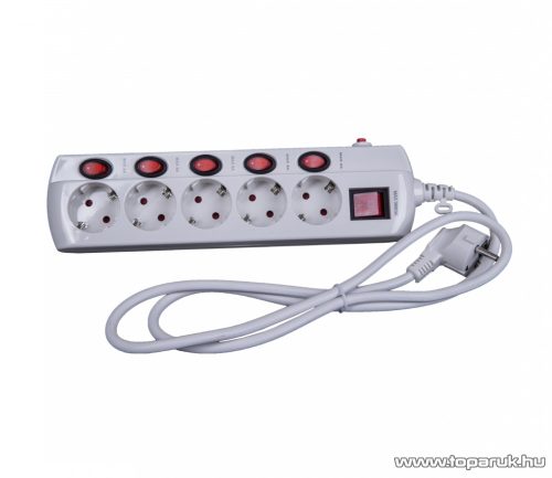 Steck SEK 515K Túlfeszültség védett külön kapcsolható hálózati elosztó, 5 aljzat, 1,5 m, fehér (11000003)