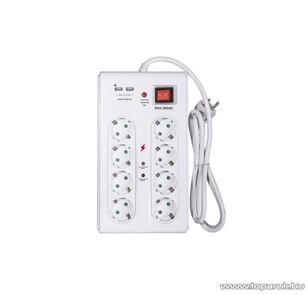 Steck SEL 815K 8-as földelt elosztó főkapcsolóval + 2 db USB porttal, túlfeszültség és túlterhelés elleni védelemmel