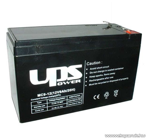UPS Power 12V, 9Ah F2, zselés, ólom akkumulátor, gondozásmentes szünetmentes akku, széles saru