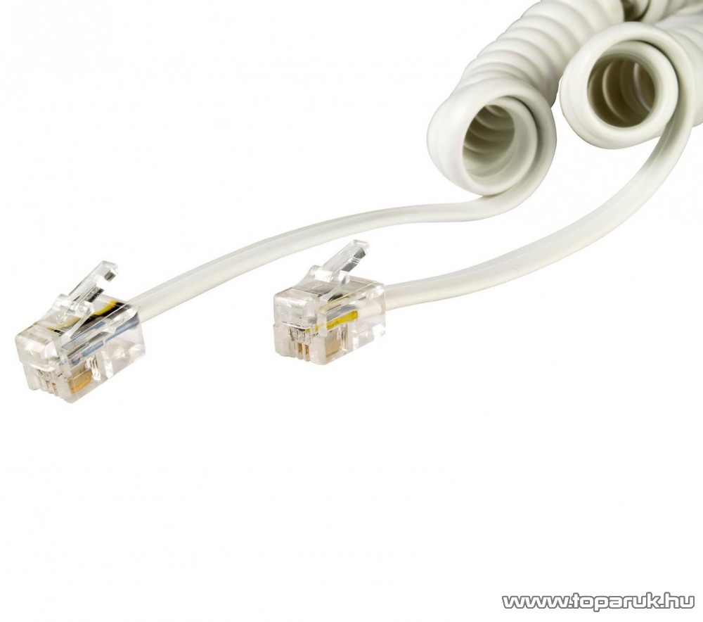 USE T 6-3/WH Telefoncsatlakozó spirál kábel, 4P4C, dugó-dugó, spirál, 3 m, fehér, 3 db / csomag