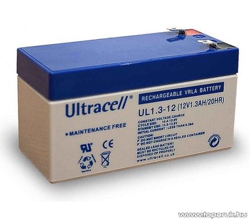 Ultracell 12V, 1,3Ah Zselés, ólom akkumulátor, gondozásmentes szünetmentes akku