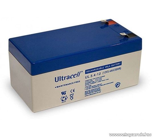 Ultracell 12V, 3,4Ah Zselés, ólom akkumulátor, gondozásmentes szünetmentes akku