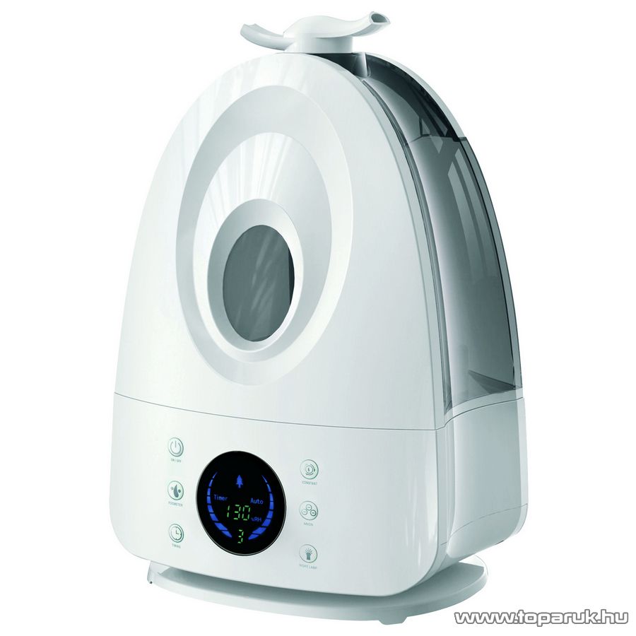 - Digitális páratartalom mérő: A készülék folyamatosan kijelzi a szoba aktuális páratartalmát.