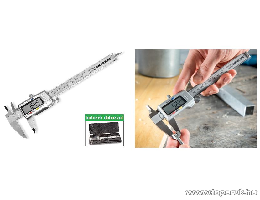 WORKZONE Digitális tolómérő LCD kijelzővel, tároló dobozzal
