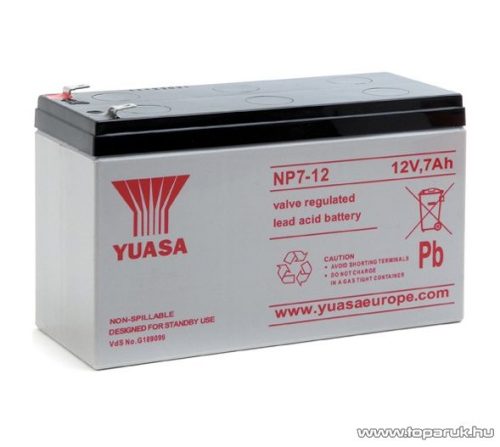 YUASA 12V, 7Ah Zselés, ólom akkumulátor, gondozásmentes szünetmentes akku