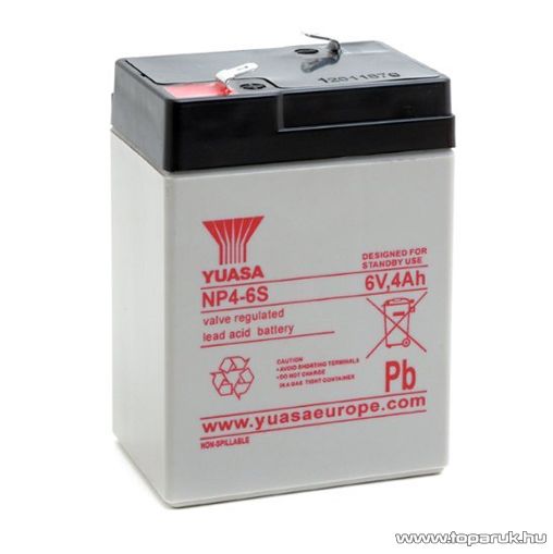 YUASA 6V, 4Ah Zselés, ólom akkumulátor, gondozásmentes szünetmentes akku