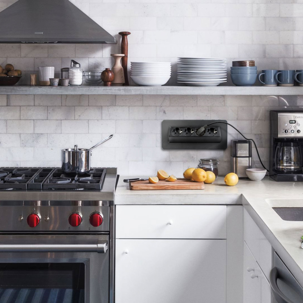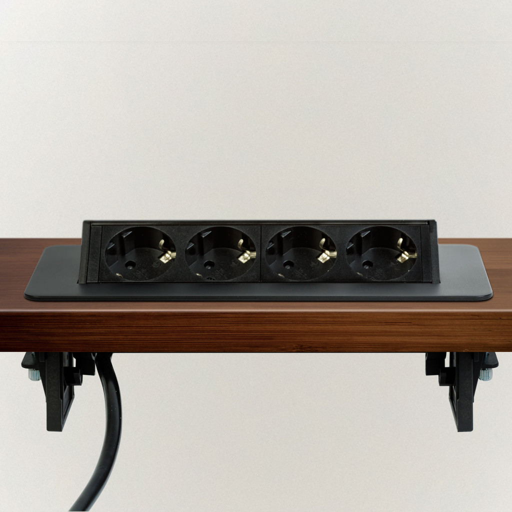 Süllyeszthető elosztó irodai és otthoni felhasználásra, szálcsiszolt felülettel, 4 db gyermekvédelemmel ellátott aljzattal. Asztala, bútora legyen mindig elegáns és rendezett, mégis funkcionális. A rejtett elosztó kiváló megoldás lehet ha már például kész konyhával rendelkezik, de nincs elegendő konnektor a kívánt helyen. Ilyenkor falvésés és villamos hálózat bővítés nélkül, remek alternatíva lehet egy rejtett elosztó. Egy mozdulat és máris rendelkezésre áll 4 szabad konnektor. Ideális lehet olyan elektromos eszközökhöz, amit nem folyamatosan használunk, kenyérpirító, vízforraló... Ha használaton kívül vannak, az "flip-up" elosztó egy mozdulattal elrejthető, ezzel is megkönnyítve például a takarítást, valamint rendezett, letisztult külsőt ad a helységnek.