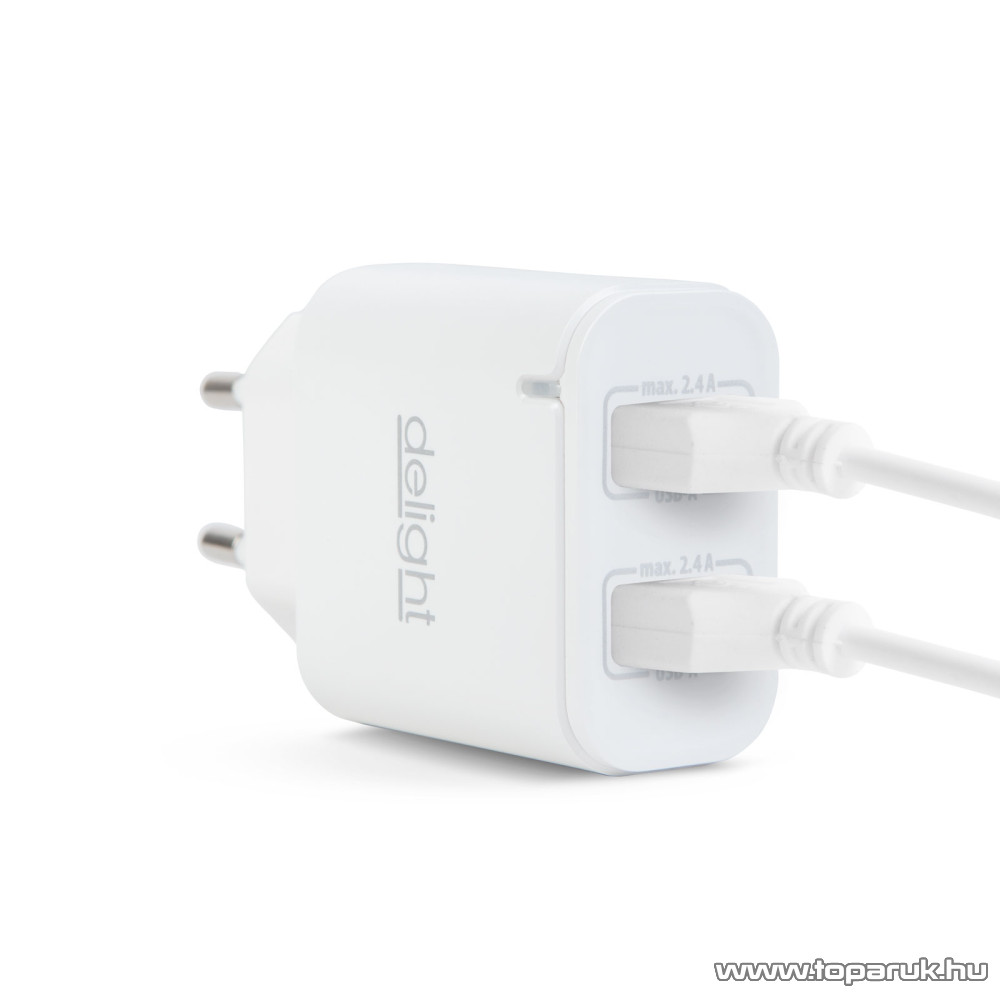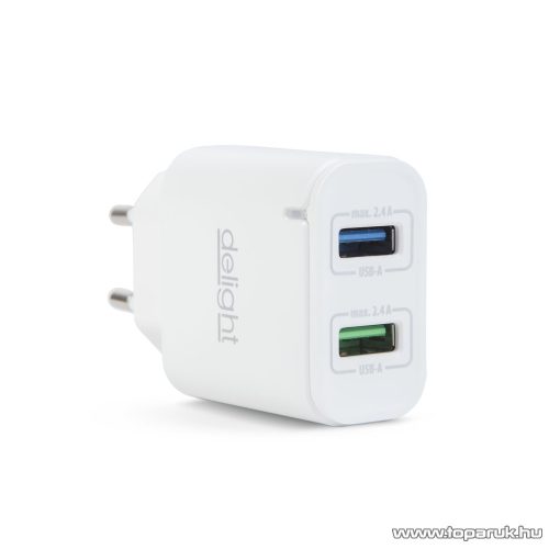 delight USB Hálózati adapter, töltő, 2 db 2.4A USB aljzattal, fehér (55045-2WH NC24)