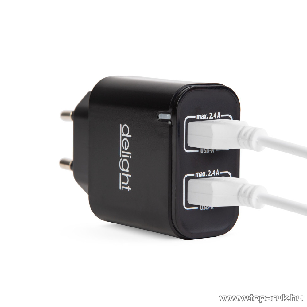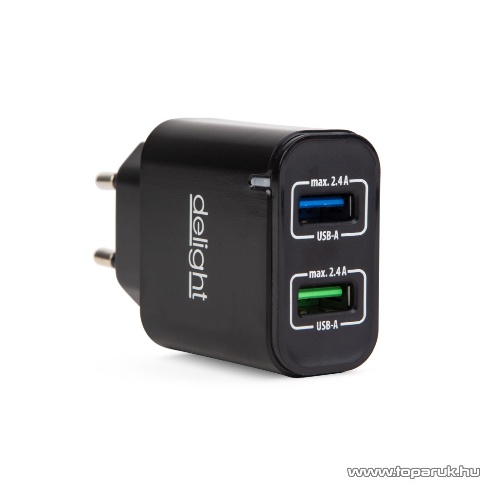 delight USB Hálózati adapter, töltő, 2 db 2.4 A USB aljzattal, fekete (55045-2BK NC24)
