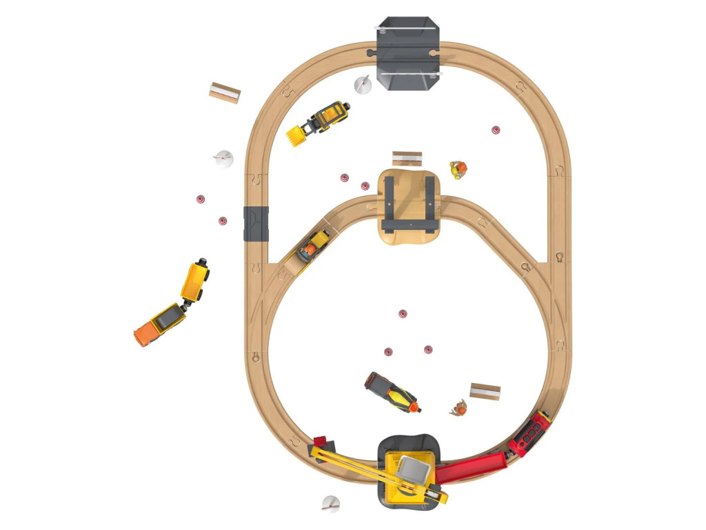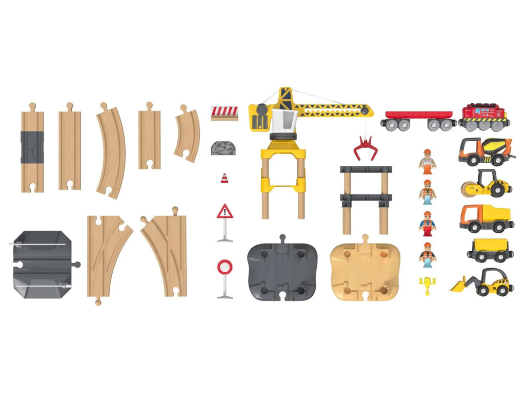 lupilu (PlayTive) Construction Site Train Set vasútkészlet mozdonnyal, munkagépekkel és daruval, 59 részes